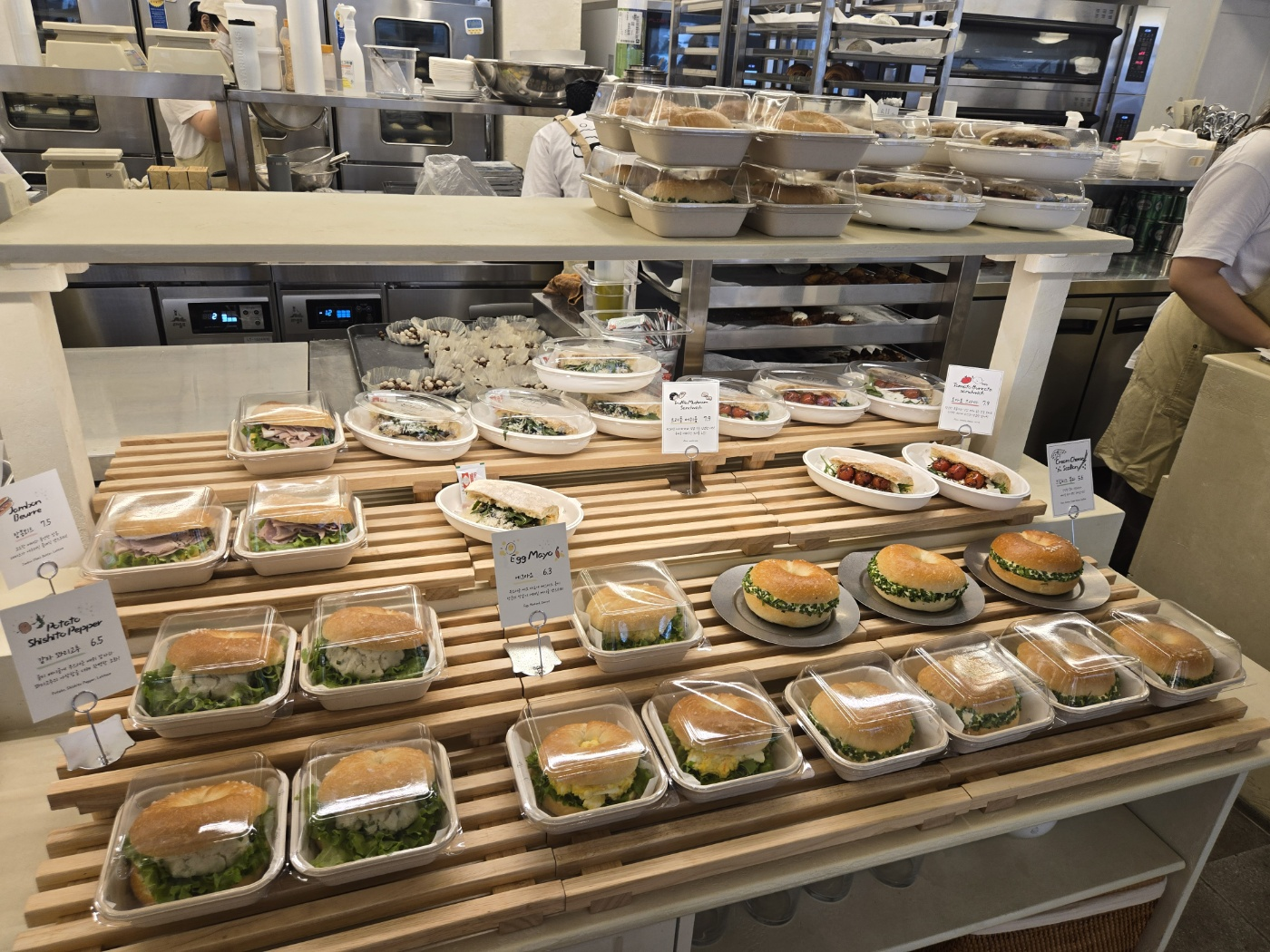 특히 점심 대용으로 베이글 샌드위치, 치아바타 샌드위치도 팔아서 직장인 수요가 꽤 많아 보였다.