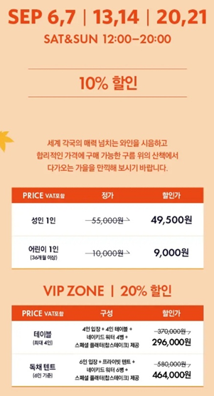 (단, 워커힐 투숙객은 무료로 와인페어에 참석은 가능하며, 리델잔 대신 플라스틱 와인잔 2개만 제공되고, 음식 쿠폰은 없다.