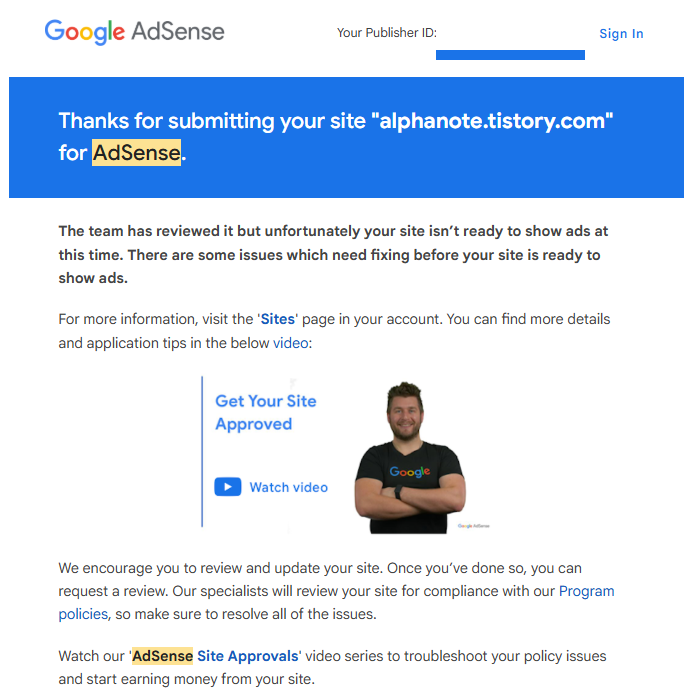 구글은 거절 사유를 구체적으로 알려주지 않는다. 그래서 나처럼 시행착오를 겪는 분들이 많을 거다.