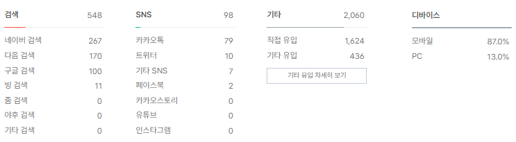 월별 조회수 자체는 크게 달라지지 않았지만, 구글 검색 유입은 꾸준히 늘고 있었던 것이다.