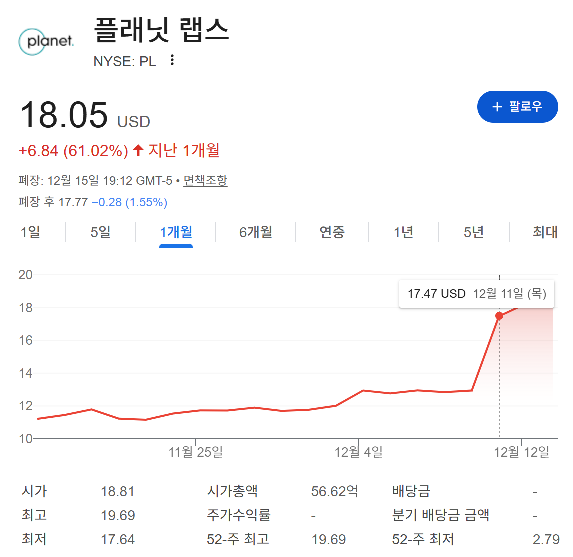 여기에 '구글과 함께 우주 AI 컴퓨팅 R&D 이니셔티브' 발표까지 붙으며, 12월 11일 주가가 하루에 30% 넘게 튀었다.