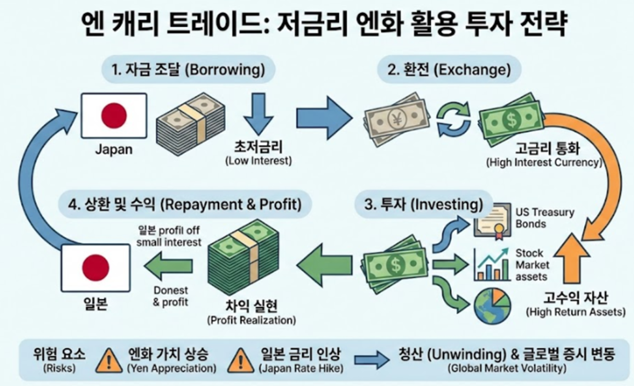 엔캐리의 수익 구조는 생각보다 단순하다. 하지만 핵심은 금리 하나로 설명되지 않는다.