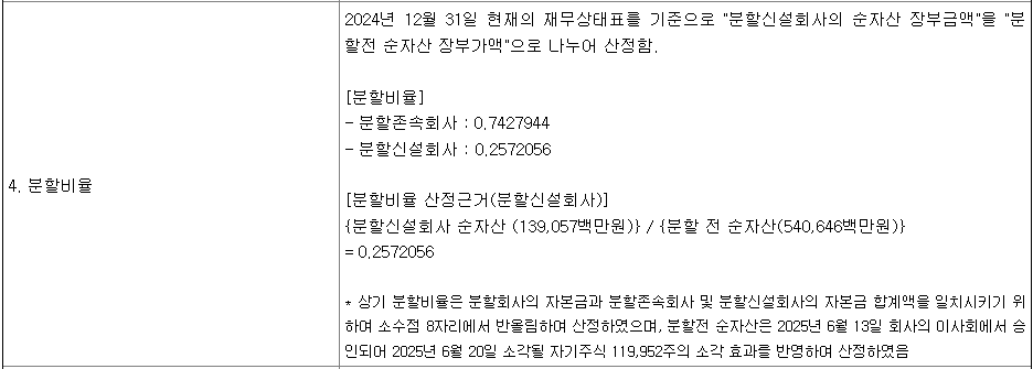 74.2%(존속법인, 홀딩스): 25.8%(신설법인, 사업회사)