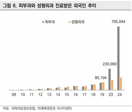 2024년 들어 외국인 의료관광객 수가 112만명을 넘어섰고, 그 중 피부과 환자만 약 70만명, 무려 전체의 60%다. 펜데믹 전만해도 성형외과가 압도적이었는데, 이제는 의료수요가 피부과로 완전히 넘어갔다.