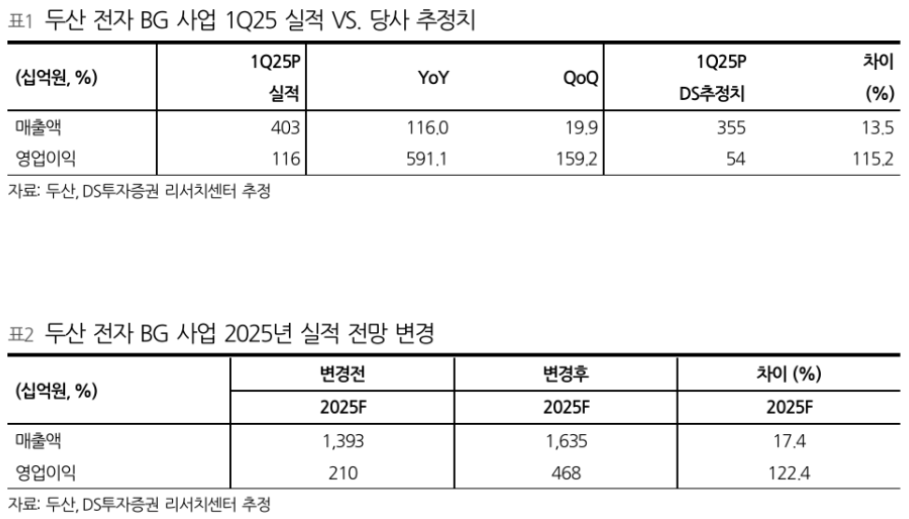 개인적으로는 이 수치가 두산 측이 1분기 실적 및 25년 상반기 추정 매출을 발표하면서 이를 벤치마크로 삼아 비슷하게 역산한 값이 아닐까 싶다.